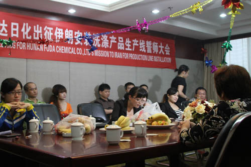 多項專利發(fā)明人王先軍 手機:150-7483-5702 手機:195-7316-02886月11日,本公司為技術(shù)人員赴伊朗上門服務(wù)舉行了誓師大會。在大會上,總經(jīng)理王先軍先生為技術(shù)人員講解了要點,并預(yù)祝技術(shù)人員凱旋歸來。大會結(jié)束后,公司聚餐并舉行了娛樂活動,充分表現(xiàn)出富達日化團結(jié)向上的精神。
