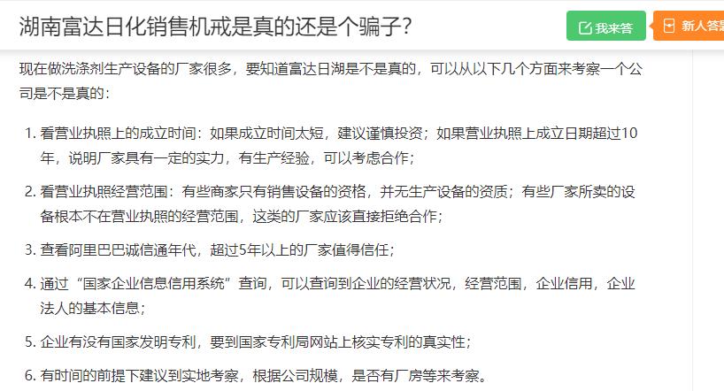 不難發(fā)現(xiàn),這些文章的主人公不一樣,但發(fā)文章的時間卻出奇的一致,都集中在2019年9月份左右。這是為什么呢?這些同行之所以惡意誹謗富達日化,是因為湖南富達日化發(fā)起的中國創(chuàng)業(yè)者防騙鋤騙互助沙龍微信群公開揭露了北京武漢等地的偽劣洗潔精設(shè)備和偽劣洗衣液設(shè)備及偽劣車用尿素設(shè)備,達到打擊報復惡意誹謗富達日化的目的。眾所周知,富達日化成立30多年,創(chuàng)始人王先軍是一百多項專利的發(fā)明人,他的所有產(chǎn)品都是被國家所認可。而當富達日化的創(chuàng)始人公開打假、公開揭露北京武漢同行偽劣洗潔精設(shè)備偽劣洗衣液設(shè)備偽劣車用尿素設(shè)備內(nèi)幕的時候,騙局制造者們狗急跳墻,試圖用捏造事實惡意攻擊湖南富達日化的行為阻止中國鋤騙防騙互助沙龍的打假行為,湖南富達日化的回答是:絕對辦不到!