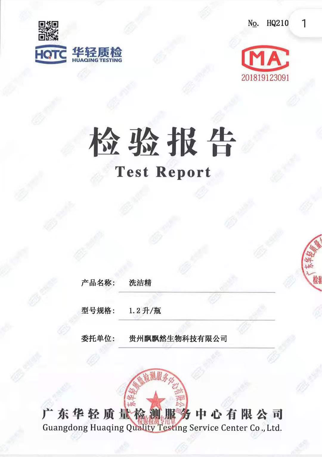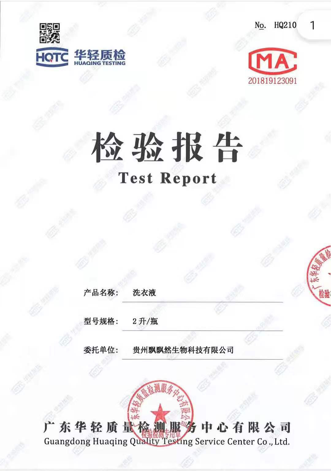 多項專利發(fā)明人王先軍 手機:150-7483-5702 手機:195-7316-0288祝賀貴州飄飄然洗潔精洗衣液產(chǎn)品通過CMA質(zhì)量檢測合格!