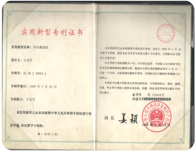 1998年4月曾獲膏體灌裝機(jī)國(guó)家專(zhuān)利 |