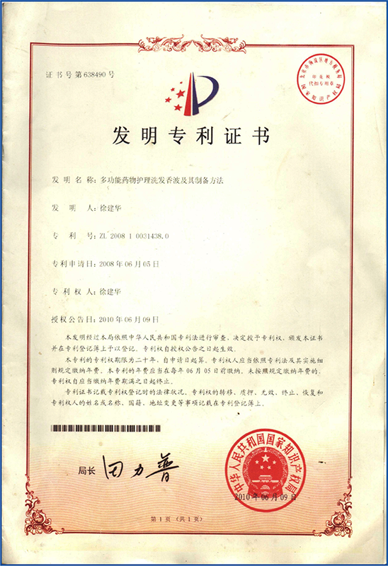 2008年06月曾獲洗發(fā)水技術(shù)發(fā)明專(zhuān)利 |
