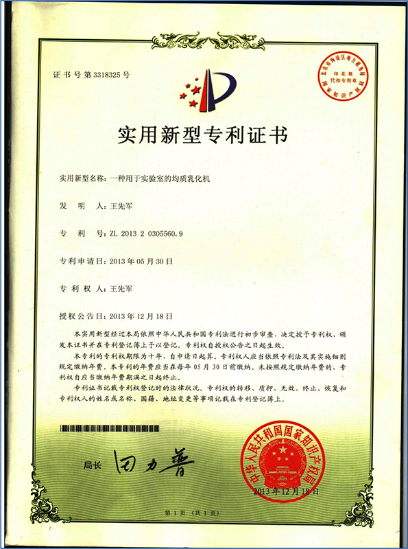 2013年05月曾獲得均質(zhì)乳化機(jī)國(guó)家專(zhuān)利 |