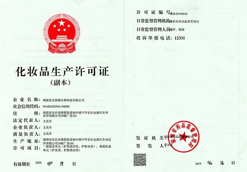 洗發(fā)水、沐浴露、洗手液許可證 |