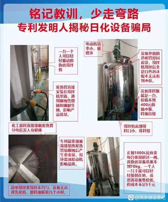 多項(xiàng)專(zhuān)利發(fā)明人王先軍 手機(jī):150-7483-5702 手機(jī):195-7316-0288洗潔精洗衣液車(chē)用尿素設(shè)備銷(xiāo)售者五花八門(mén),許多不法商販炮制萬(wàn)元投資可辦廠的謊言,推銷(xiāo)低價(jià)偽劣洗潔精設(shè)備,洗衣液設(shè)備,車(chē)用尿素設(shè)備,無(wú)數(shù)初創(chuàng)業(yè)者上當(dāng)受騙血本無(wú)歸,為了讓創(chuàng)業(yè)者少走彎路,受良心驅(qū)使,公開(kāi)揭示日化設(shè)備騙局,以此讓大家少走彎路。
