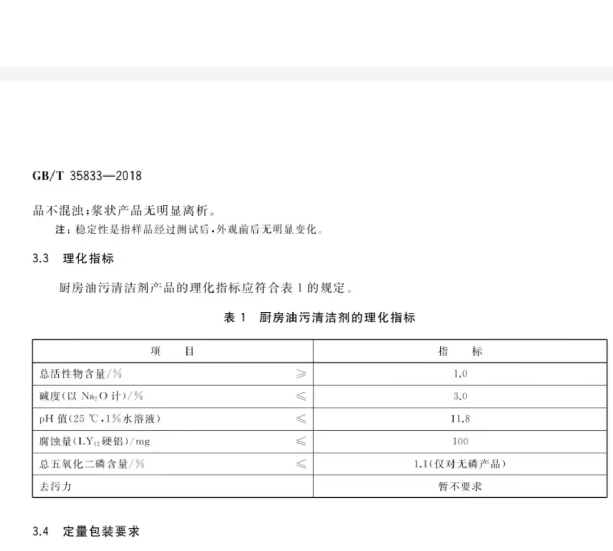 國(guó)家國(guó)定:油污凈PH值應(yīng)小于11.8。