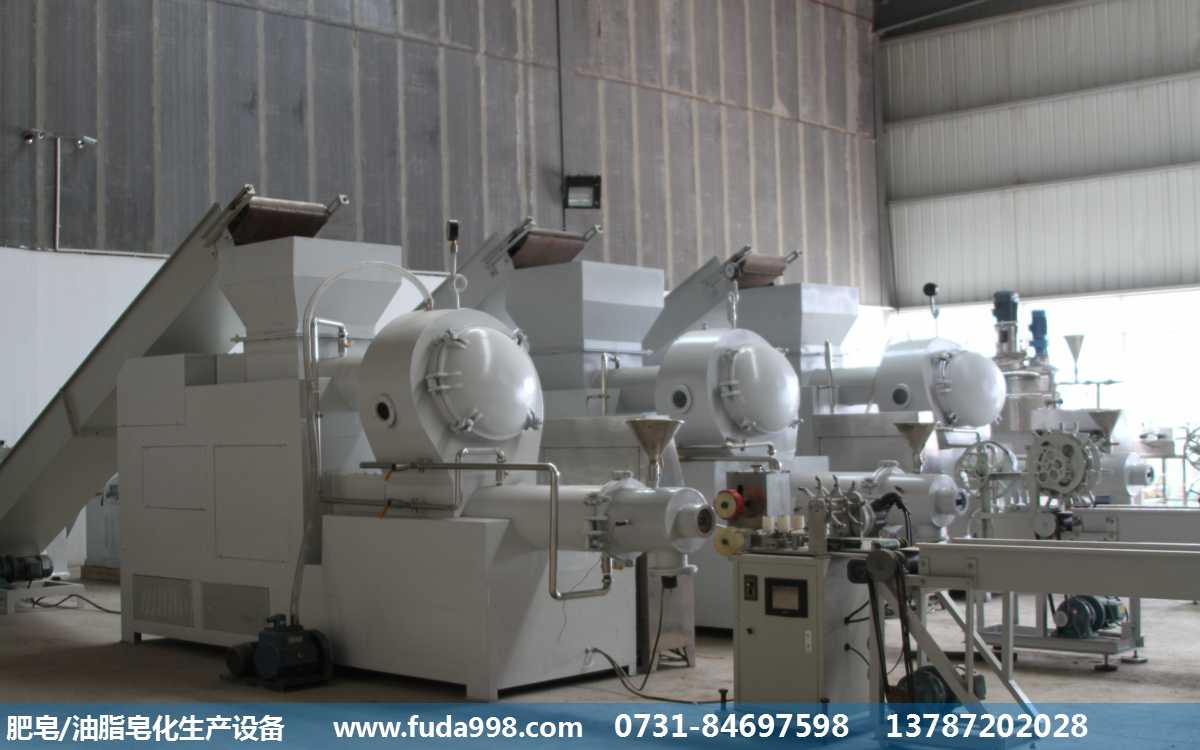 采用富達(dá)日化FZ-2000油脂皂化、肥皂成套生產(chǎn)設(shè)備,可以從獲取動(dòng)物油脂,通過油脂的皂化,生產(chǎn)皂基,皂基干燥后,加上配料,壓條,切塊,打印,包裝,最后制作成肥皂。
