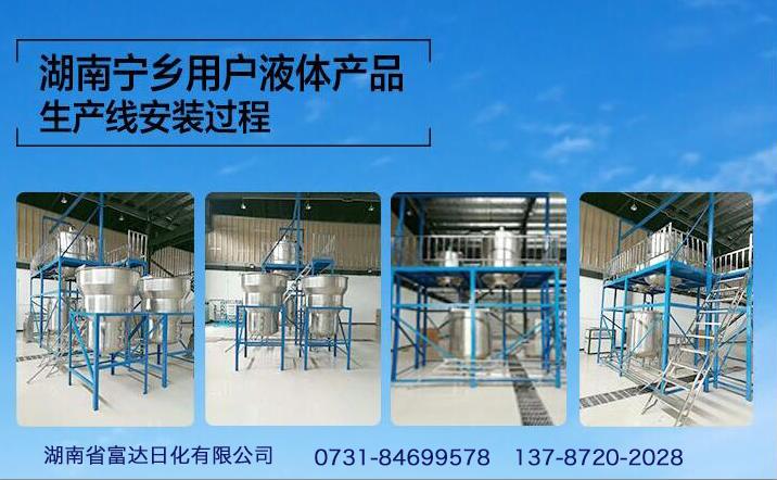 多項(xiàng)專利發(fā)明人王先軍 手機(jī):150-7483-5702 手機(jī):195-7316-0288寧鄉(xiāng)用戶日產(chǎn)10噸—60噸液體產(chǎn)品生產(chǎn)線安裝完成。
