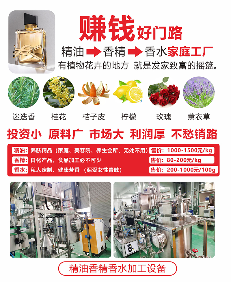 多項(xiàng)專利發(fā)明人王先軍 手機(jī):150-7483-5702 手機(jī):195-7316-0288設(shè)備投資五萬元以上即可生產(chǎn)。精油用于養(yǎng)生,美容院、足浴中心;香精用于食品行業(yè)、日化產(chǎn)品行業(yè);香水用于諸多追求品質(zhì)生活的男女消費(fèi)者的喜愛。合成精油香精香水的原料來源廣泛,主要是艾草、迷迭香、玫瑰等所有植物根桿或花卉,廠房占地面積20平方米以上,一人就可生產(chǎn),由于用途廣,市場(chǎng)不愁銷路。利潤(rùn)空間大,投資風(fēng)險(xiǎn)小,適合大眾創(chuàng)業(yè)。