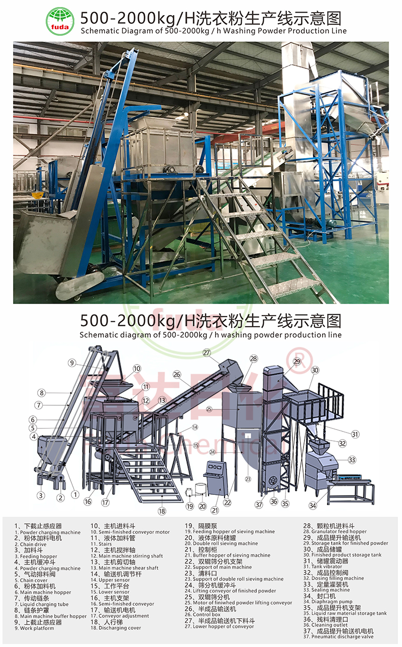 多功能,可以生產(chǎn)粉狀或者顆粒狀洗滌產(chǎn)品,如洗衣粉,去污粉,皂粉,漂白粉等 |